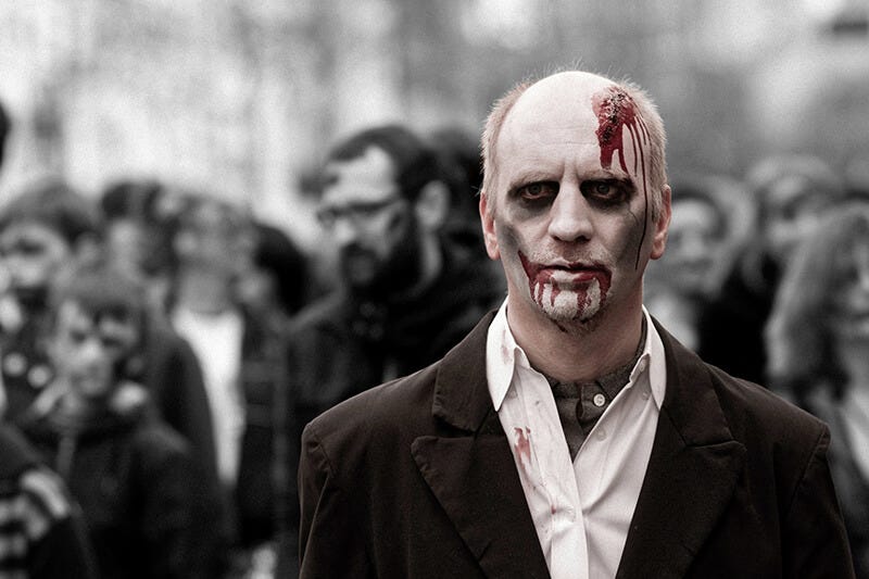 Along with empty time, our age creates a surplus of death, inasmuch as we inherit a kind of living death as our birthright under capitalism. A commodity economy requires the walking dead to keep things ticking over. As this requirement is the first principle of the economy, huge numbers of specialists are kept busy clearing a route for the funeral march, erecting signposts and way stations and lining the pavement to cheer the rest on. Universities, advertising agencies, government departments, political parties and media corporations work to smooth its path and keep things running to order. At the entrance to the economy is a sign announcing: Welcome to the Death Factory.