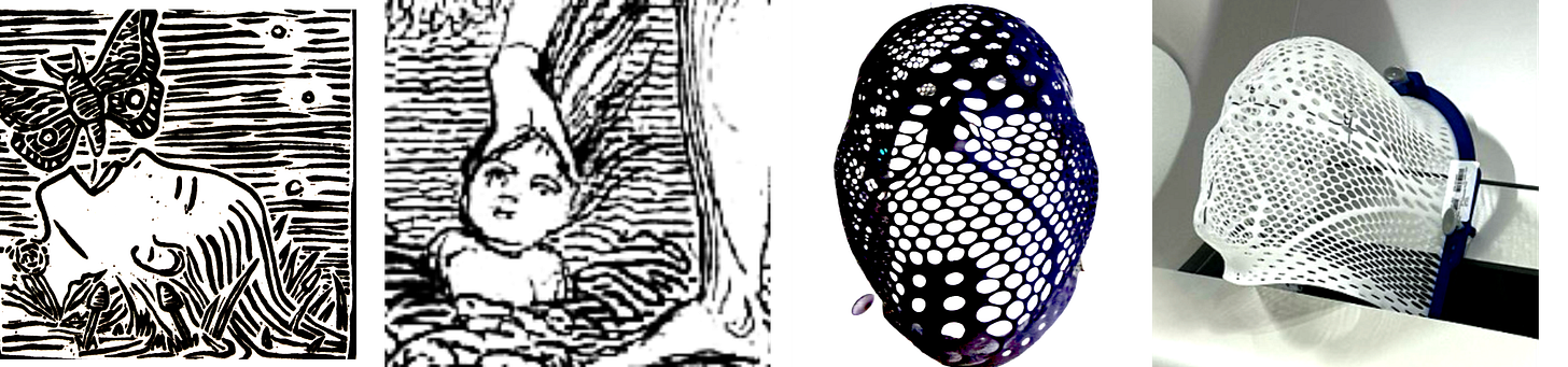 The wrinkled surface of the cerebral cortex in the scan echoed the Bhavachakra—the wheel of Saṃsāra, of cyclical existence (“Saṃsāra… is a Sanskrit word that means ‘wandering’ as well as ‘world’, wherein the term connotes ‘cyclic change’ or, less formally, ‘running around in circles’)10—against which the bhikkhu rests in the tattoo. Here is an image, not only of that empty time turning that we have talked of, of cyclical return and, dare I say it, reincarnation (though in this formulation, reincarnation is mere repetition, as in the ‘natural’ repetition of pagan society). In the original Fire Sermon, the argument is that the bhikkhu must free themself from the grasping tyranny of the senses. We, on the other hand, will be moving in the other direction. In any case, this combined image almost made me fall out of bed.